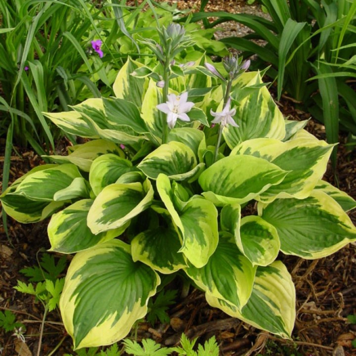 Рассада хосты Твилайт (Twilight) пригодится всем садоводам, желающим заполнить притененные места своих участков проверенным, давно знакомым растением. Листья образует толстые, насыщенно-зеленого цвета со светлым узором по краю листа. Растение часто используется в ландшафтном дизайне и декоративном садоводстве, хорошо себя чувствует при выращивании в контейнерах и горшках. Разрастание куста происходит достаточно интенсивно. Как и подавляющее большинство других хост, сорт Твилайт отлично растет в тени, хотя и способен выдержать несколько часов утреннего солнца.