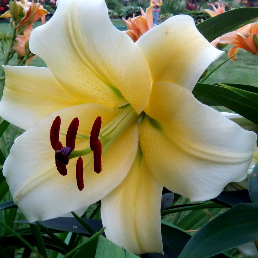 Саженцы и рассада от-гибридной Лилии Авокадо (Lilium OT-hybrid Avocado) из канадской селекционной серии вырастают высотой до 110 см и распускаются множеством крупных цветков. Для лучшего цветения посадку осуществляют в апреле-мае или сентябре-октябре, подготовив плодородную почву и песочную подушку на хорошо освещенном участке. Хрупкие цветки этого обворожительного многолетнего луковичного растения представлены нежно-желтыми или кремовыми оттенками со светло-оранжевой серединкой и желто-зелеными тычинками. Открытая форма цветка с волнистыми слегка загнутыми кончиками идеальна для составления садовых или букетных композиций.
