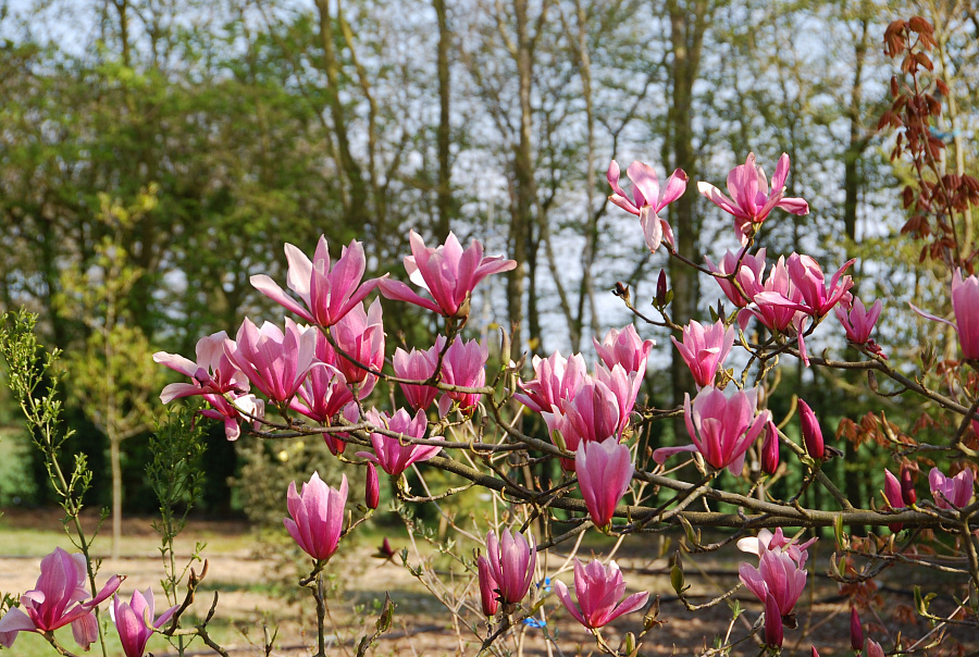 Саженцы Магнолии Спектрум (Spectrum) – растение необычайной красоты. В сезон на раскидистой кроне появляются очень большие цветы. Они источают приятный аромат и радуют глаз своим розовым цветом. Декоративная магнолия имеет коловидную крону, диаметр которой может доходить до трёх метров. Высота варьируется от 5 до 7 метров.