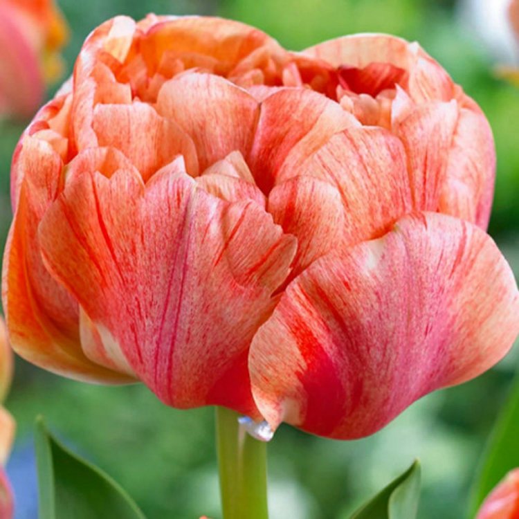 Тюльпан махровый поздний "Гудошник Дабл" - это удивительное растение, которое поразит вас своей красотой и изысканностью. С его огромными цветками светло-оранжевого цвета с красным штрихом, этот сорт тюльпанов станет настоящим украшением вашего сада. Высота растения достигает 45 см, что делает его идеальным для групповых и одиночных посадок. Листья зеленого цвета создают прекрасный контраст с яркими цветами, добавляя уют и живость вашему саду.